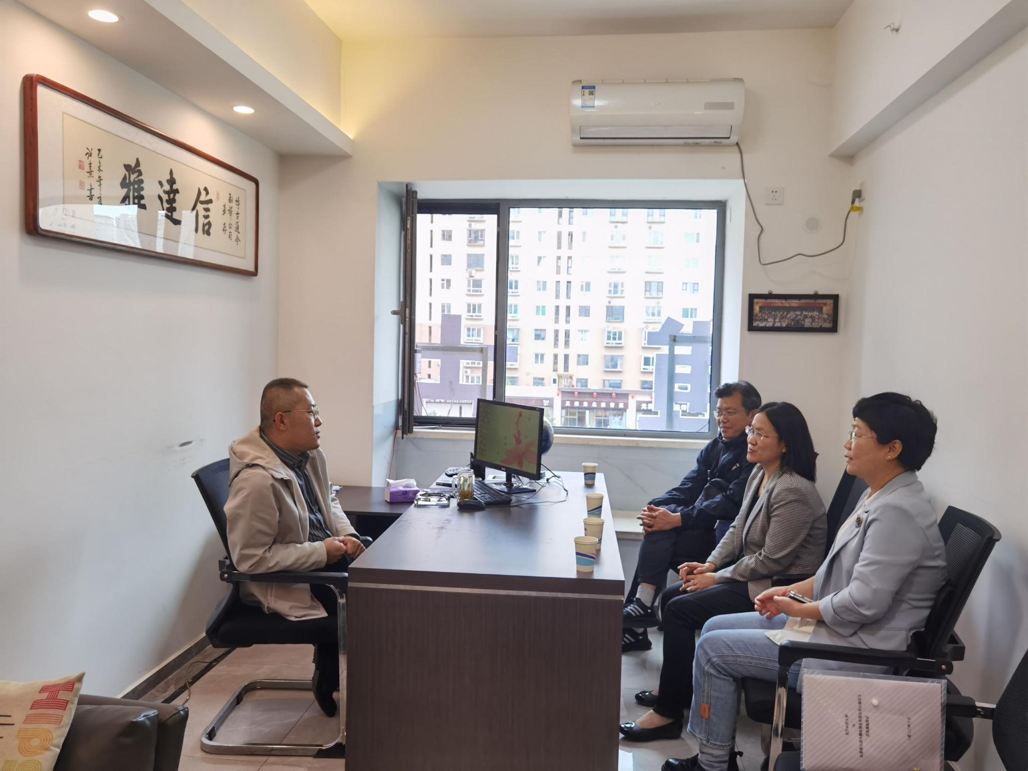 2023年10月18日下午,学院院长董艳,日语系及西语教研室主任齐明皓,英语系主任郭霞,办公室主任杨娜一行到太原博古通今翻译服务有限公司,洽谈学生实践教学合作事宜,并签订实习基地协议。博古通今翻译公司总经理赵建飞接待了董院长一行。
